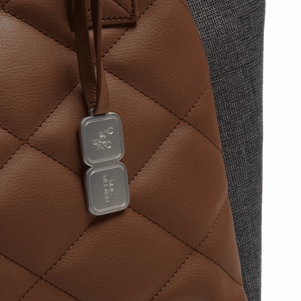 Kleine metalen voetjes aan de onderkant van de tas zorgen voor een veilige standaard en bescherming tegen vuil.