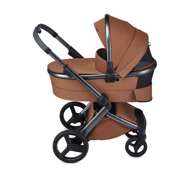 - Telescopische handgreep: Een in hoogte verstelbare handgreep van kunstleer maakt de kinderwagen comfortabeler voor ouders van verschillende lengte.