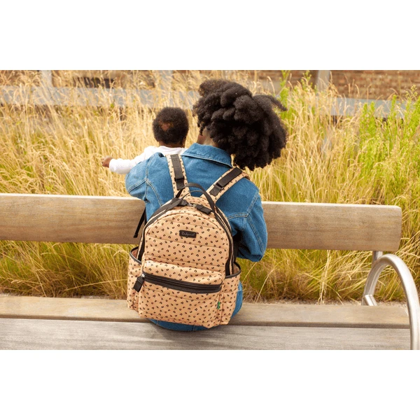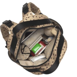 De talrijke binnen- en buitenvakken houden alles netjes en gemakkelijk terug te vinden, zodat niets kan worden vergeten. Het bevat ook een geïsoleerde flessenhouder en een gewatteerd aankleedkussen.