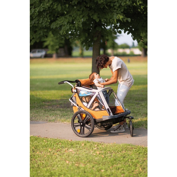 - Verandert de fietskar in een comfortabele kinderwagen
