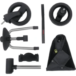 Je kunt een wiel voor aan de Buggypod monteren. Het wiel is bewegelijk en verhoogt de stabiliteit van de Buggypod, je kunt ook een onafhankelijk buggy maken, wanneer je het wiel links achter monteert.
