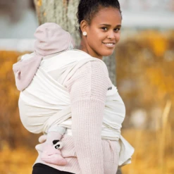 Daarbij rekt de draagdoek niet uit – zelfs niet als een zwaardere baby voor langere tijd gedragen wordt.