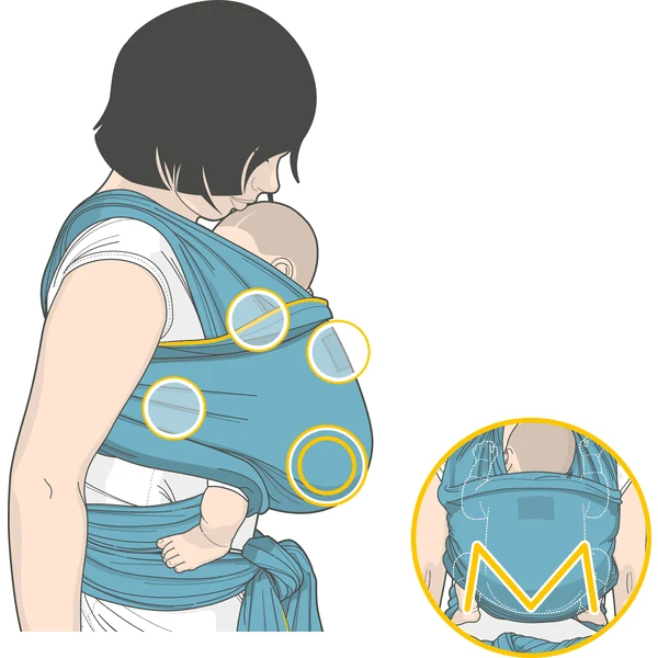 One-size: MANDUCA Sling heeft een grootte van 5,50 meter lang en 60 cm breed: Passend voor alle ouders en met genoeg speling voor nek-ondersteuning en een goede M-positie. MANDUCA Sling kan met een basis bindtechniek ook zonder kind worden voorgebonden. Smalle spitse uiteinden en een net zo mooie als praktische stiksels (zoals aanbevolen door professionals) zorgen voor het eenvoudig knopen van de draagdoek.