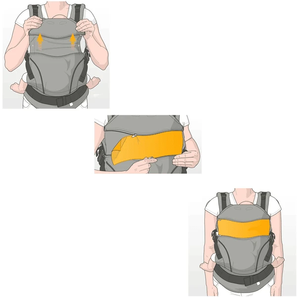 De ZipIn Ellipse kan ook in combinatie met de Size-It en/of zitverkleiner gebruikt worden worden en biedt zo nog meer mogelijkheden om kleine baby’s in de Manduca te dragen.