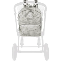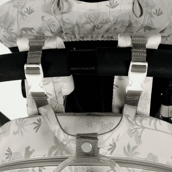 - Twee grote verstelbare handvatten om op de rug te hangen en twee kleine handvatten om aan de kinderwagen te bevestigen