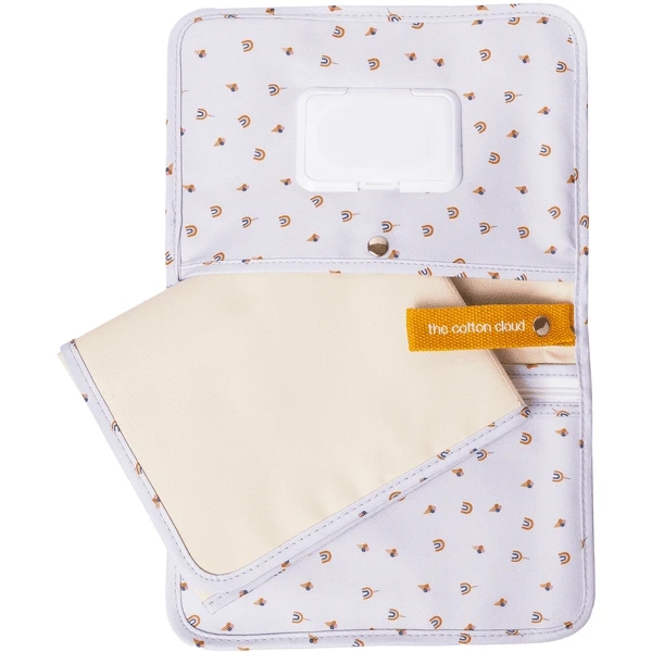 Product details: Luiertas in de iconische Design Design Regenboog Luiertas met groot verschoningsmatje en vochtige doekjescontainer Navulbare container voor vochtige doekjes bevat tot 50 vochtige doekjes Met grote zak met rits voor verzorgingsartikelen Kan gemakkelijk aan de kinderwagen worden bevestigd